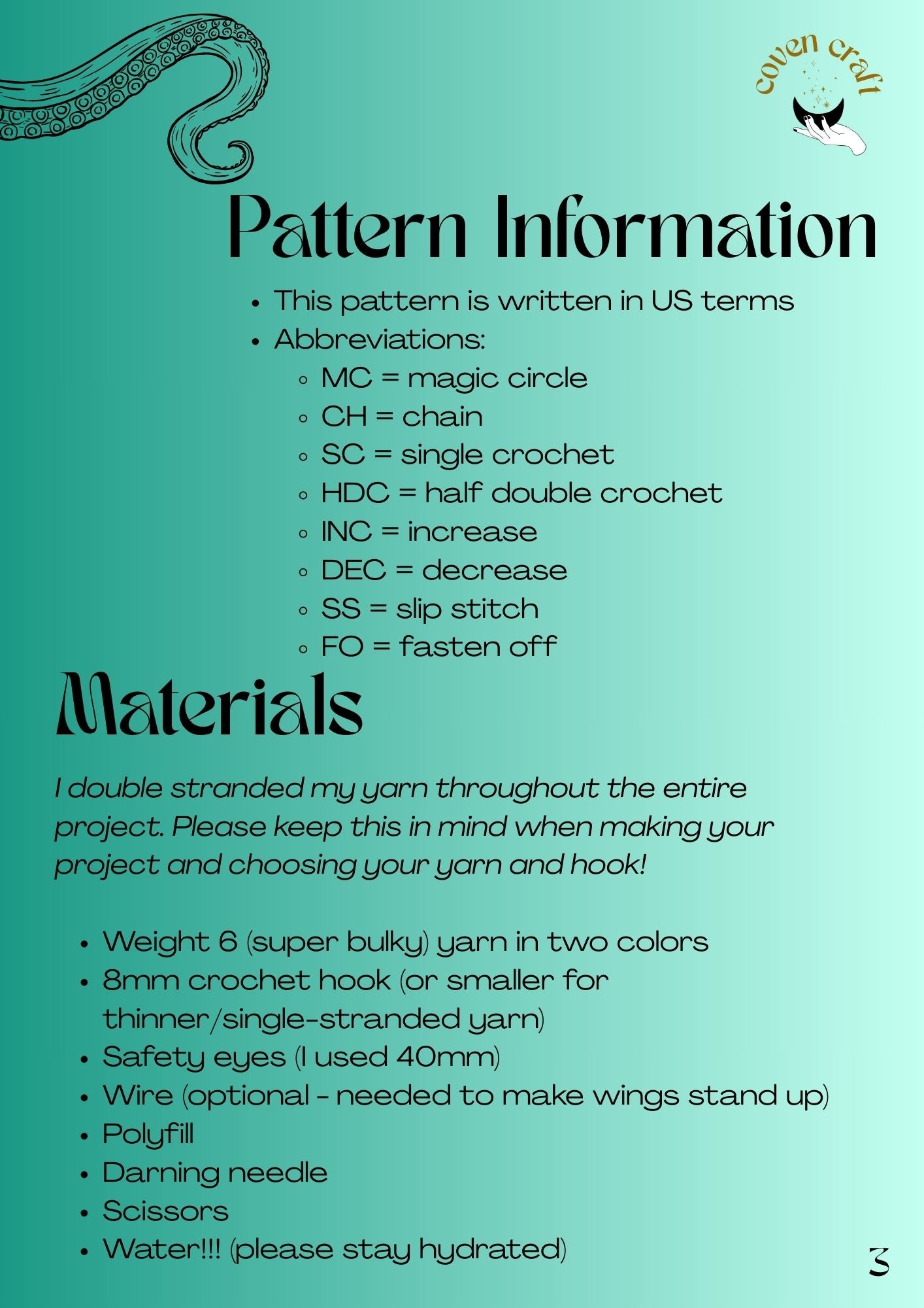 This pattern is at an intermediate (or advanced beginner) level. Written in US crochet terms. Please see photos for pattern information, required materials, and examples of creations.
